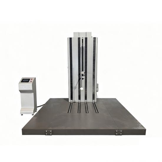 O testador de queda zero consiste em um garfo "e" que pode ser movido para baixo rapidamente. os produtos testados são colocados em equilíbrio de acordo com os requisitos de teste (teste de face, borda, ângulo).